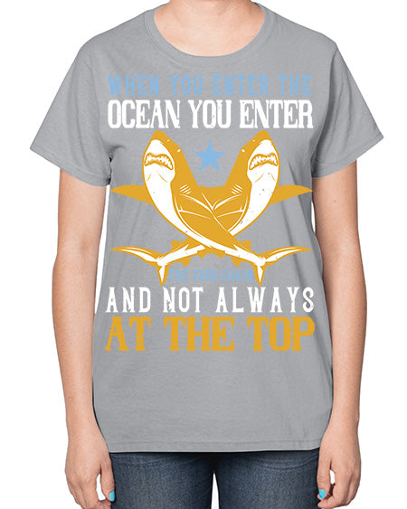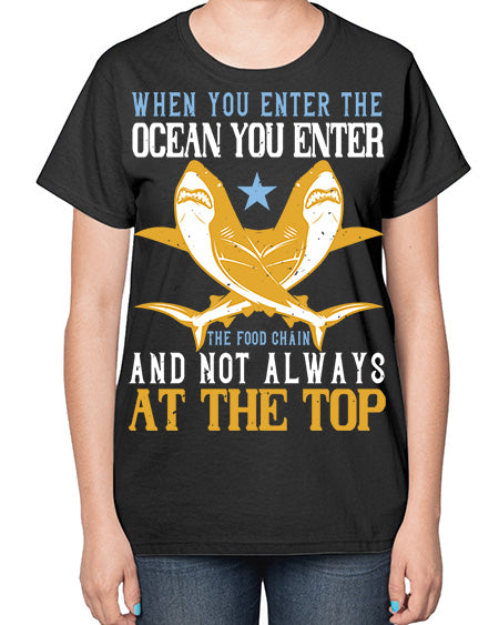 When you enter the ocean you enter the food chain and not always at the top Style 2# - shark-fish- Ladies T-Shirt