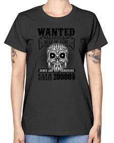 Wanted 1204# - skull and bones- Ladies T-Shirt