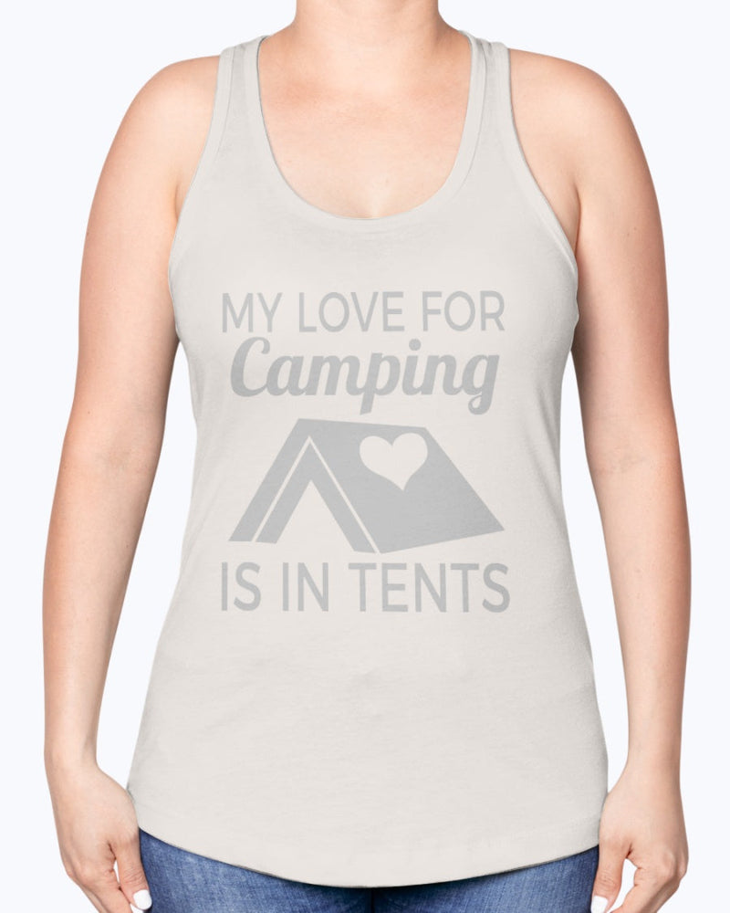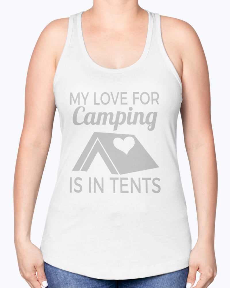 My Love For Camping is in tents - Hobbies -Racerback Tank