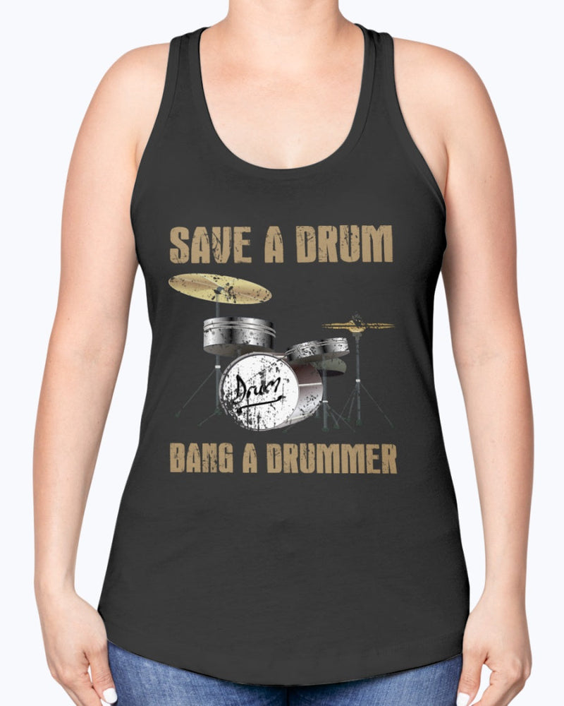 Save A drum bang a drummer - Hobbies -Racerback Tank