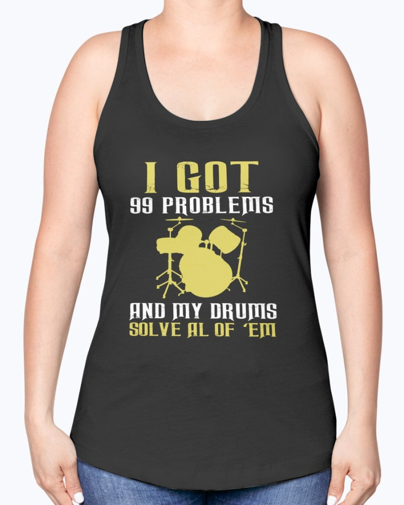 I got 99 problems and my drums solve all of them- Hobbies -Racerback Tank