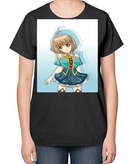 Cute and beautiful girl with blue dress game 22# - anime- Ladies T-Shirt