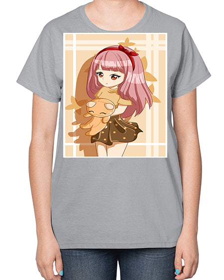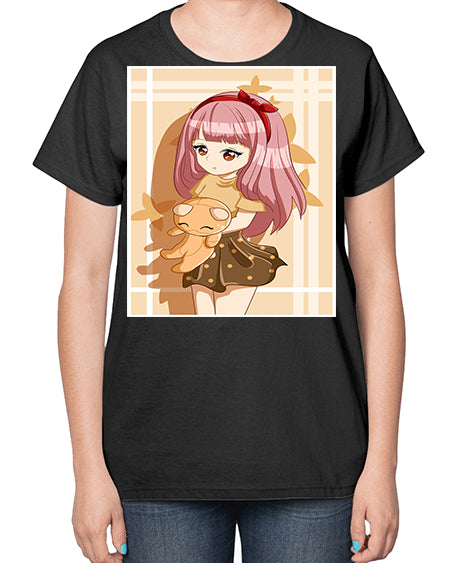 Cute and beautiful girl long pink hair with doll 9# - anime - Missy T-Shirt