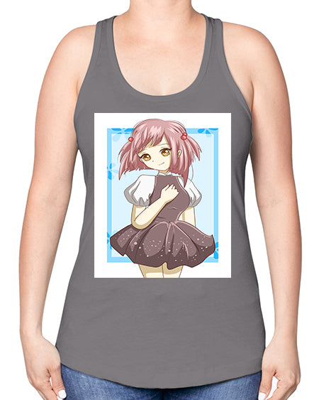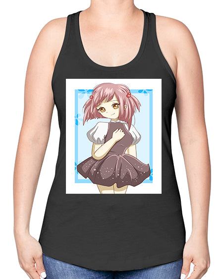 A beautiful girl wearing uniform with book 93# - anime -Racerback Tank