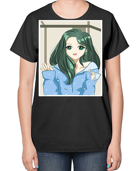 Cute and beautiful girl green long hair 134# - anime - Missy T-Shirt