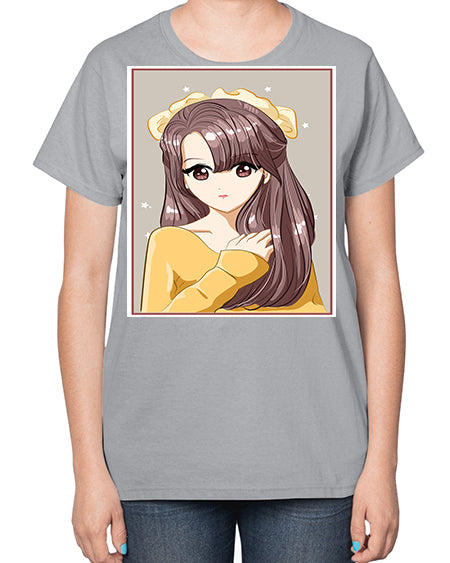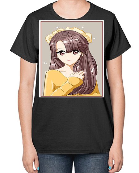 Cute and beautiful girl brown long hair and ribbon 136# - anime- Ladies T-Shirt