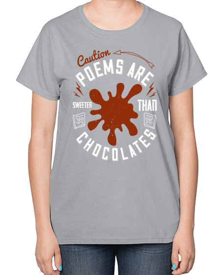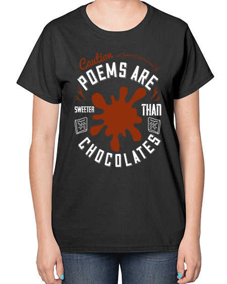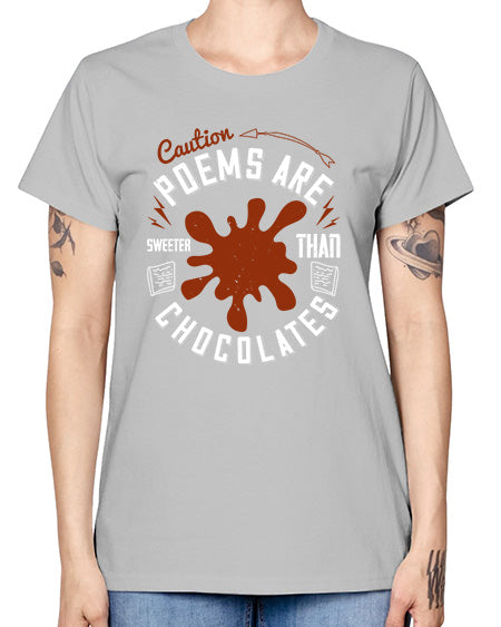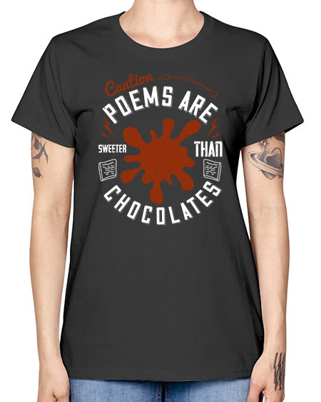 caution poems are sweeter than chocolates 77# - chocolate- Ladies T-Shirt