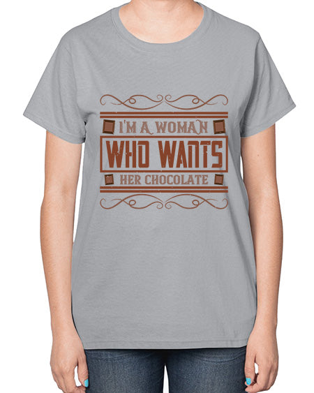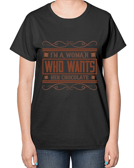im a woman who wants her chocolate 273# - chocolate- Ladies T-Shirt