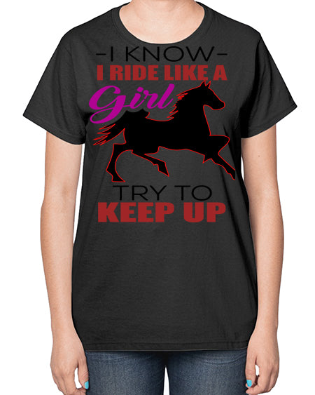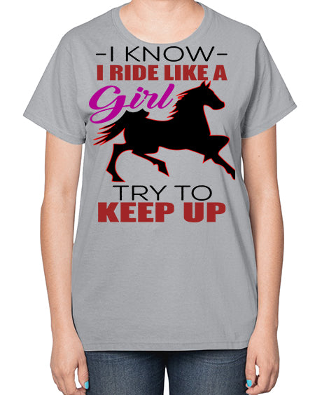 i kno i ride like a girl try to keep up - horse- Ladies T-Shirt