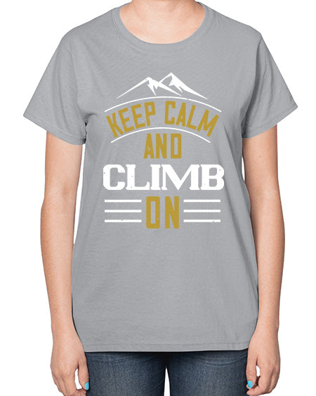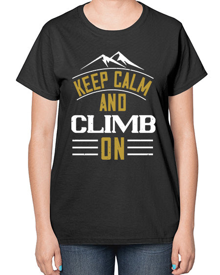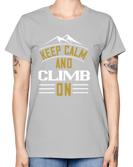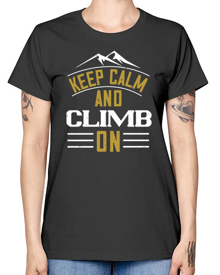 keep calm and climb on 1036# - mountain valcano hill- Ladies T-Shirt