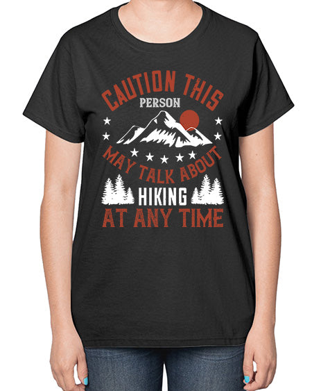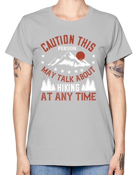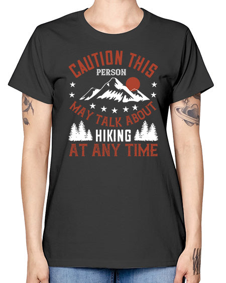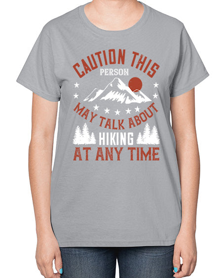 caution this person may talk about hiking at any time 550# - mountain valcano hill- Ladies T-Shirt