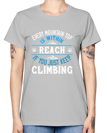 every mountain top is within reach if you just keep climbing 716# - mountain valcano hill- Ladies T-Shirt