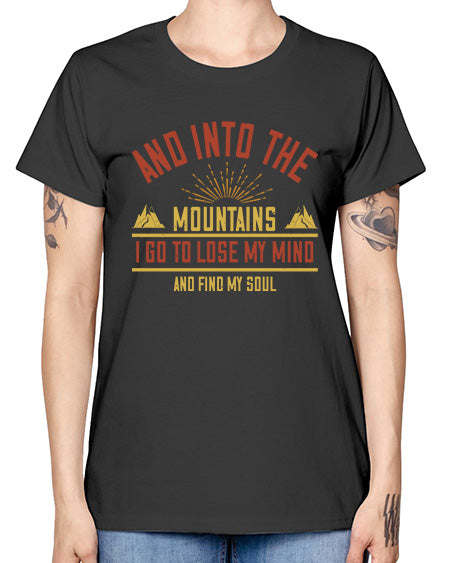 and into the mountains i go to lose my mind and find my soul 324# - mountain valcano hill- Ladies T-Shirt