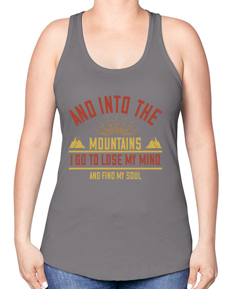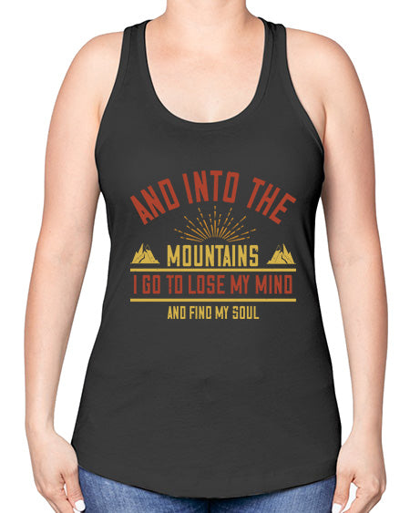 and into the mountains i go to lose my mind and find my soul 324# - mountain valcano hill -Racerback Tank