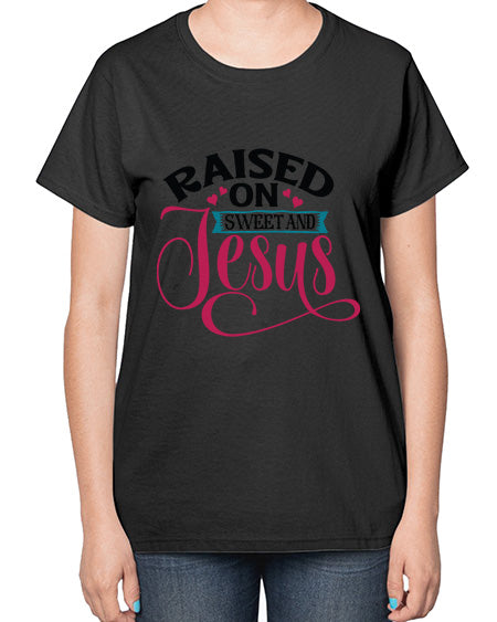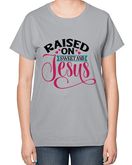 raised on sweet and jesus 1491# - tea- Ladies T-Shirt