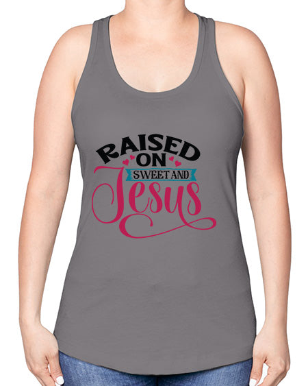 raised on sweet and jesus 1491# - tea -Racerback Tank