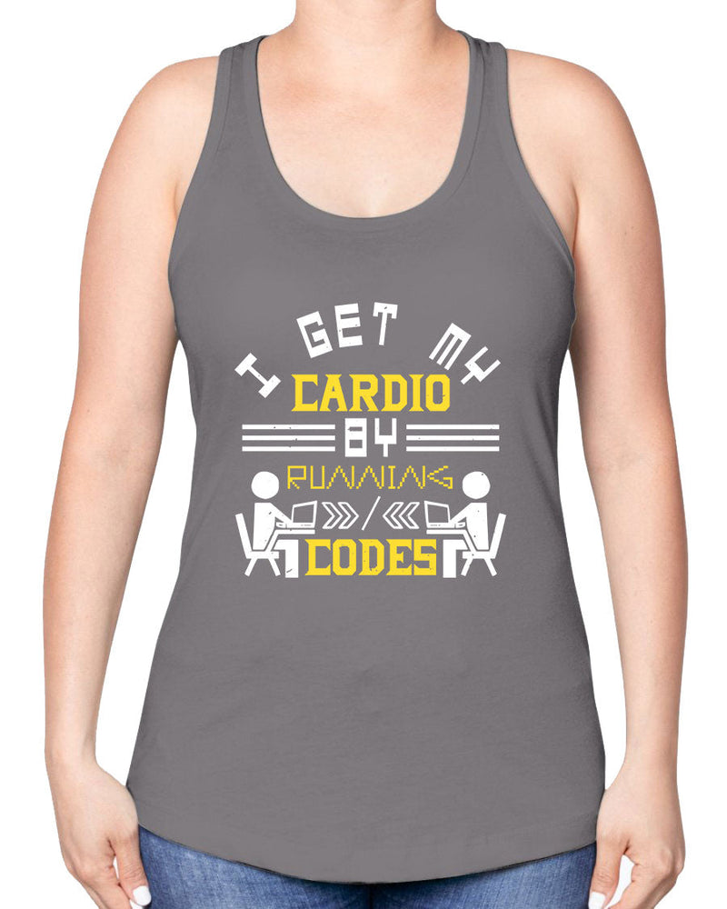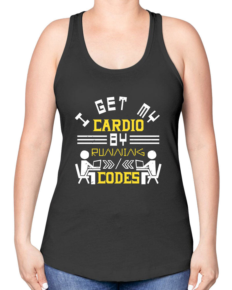 21 I get my cardio by running codes - Computer -Racerback Tank