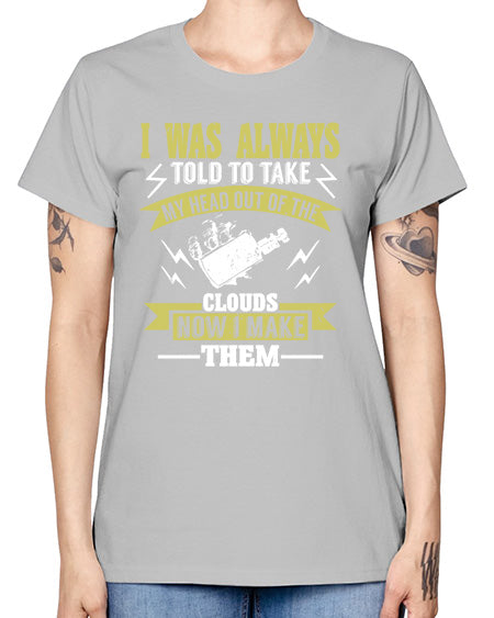 I was always told to take my head out of the clouds now i make them 122# - vape- Ladies T-Shirt
