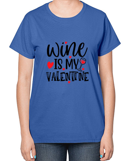 wine is my valentine 1751# - wine- Ladies T-Shirt