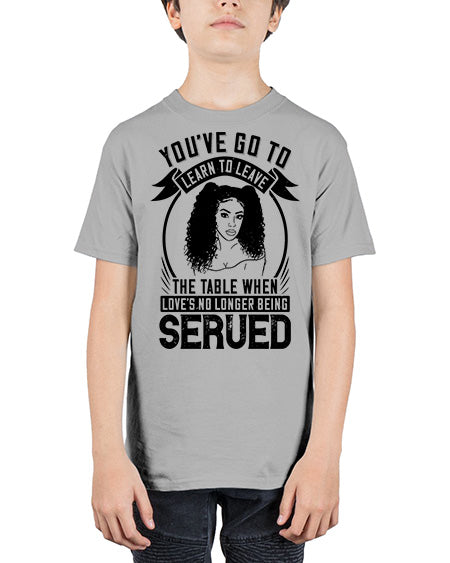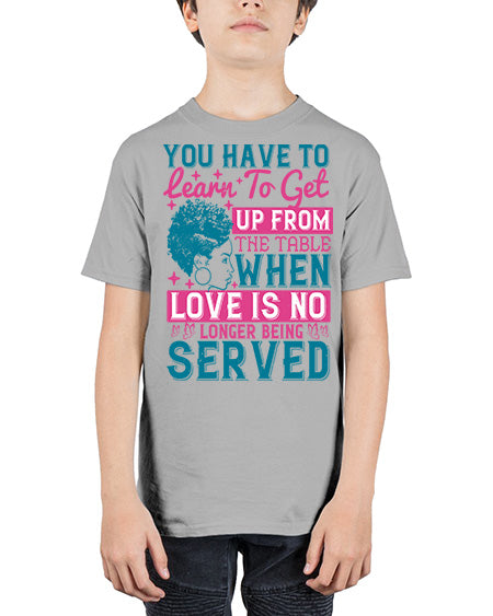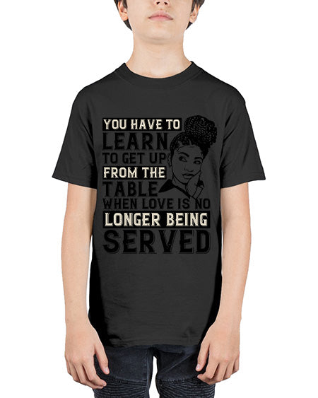 Youve got to learn to leave the table when loves no longer being served Style 46# - black afro - Youth Tee Unisex