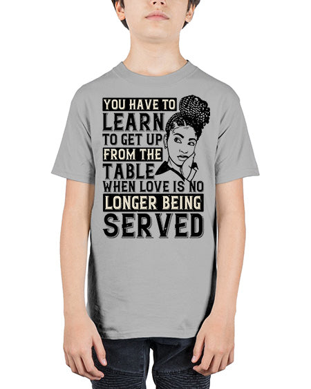 Youve got to learn to leave the table when loves no longer being served Style 41# - black afro - Youth Tee Unisex