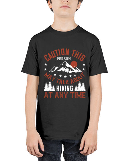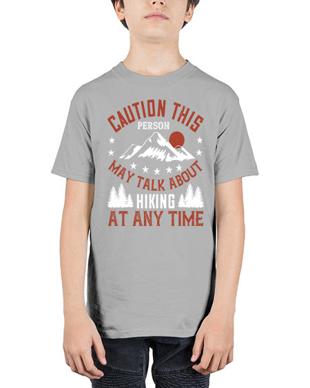 caution this person may talk about hiking at any time 550# - mountain valcano hill - Youth Tee Unisex
