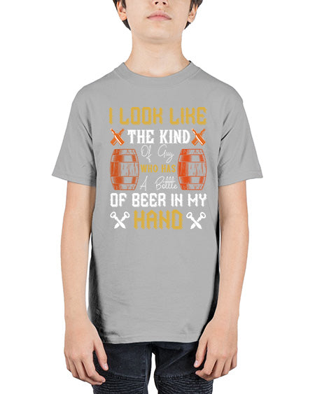 i look like the kind of guy who has a bottle of beer in my hand 1130# - beer - Youth Tee Unisex