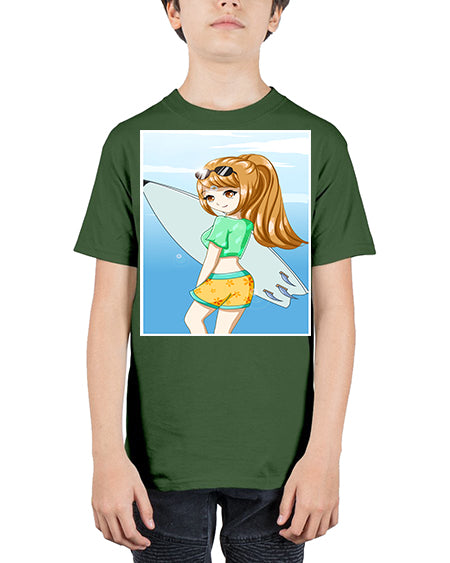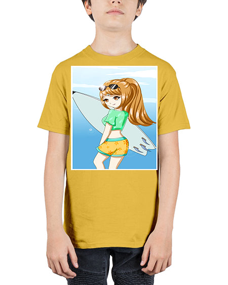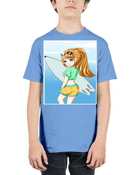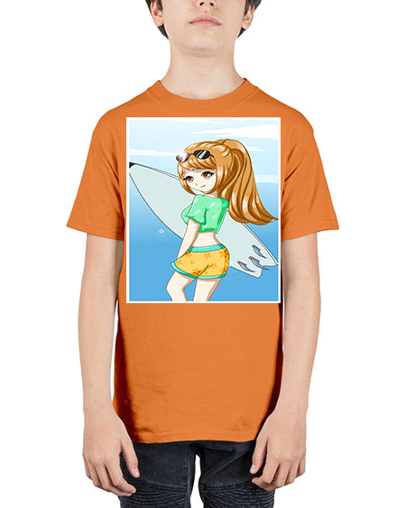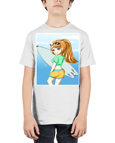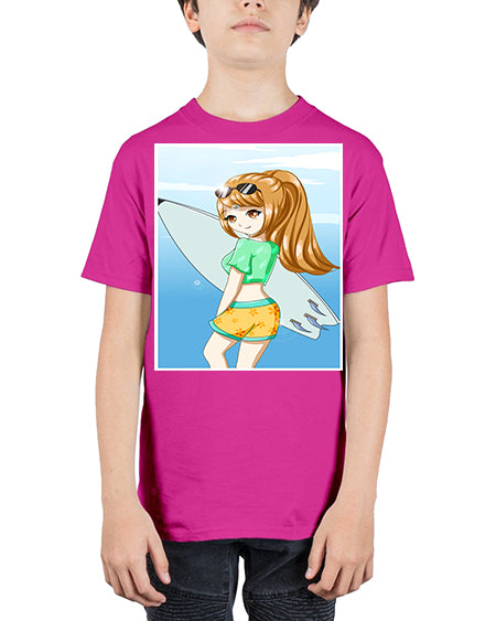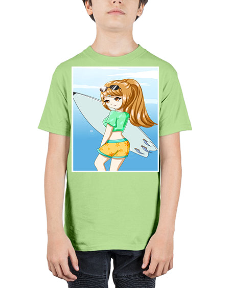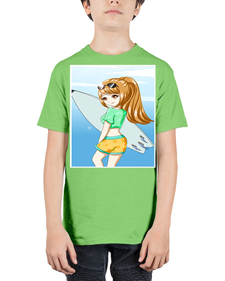 Cool and beautiful girl with surfboard in the summer 172# - anime - Youth Tee Unisex