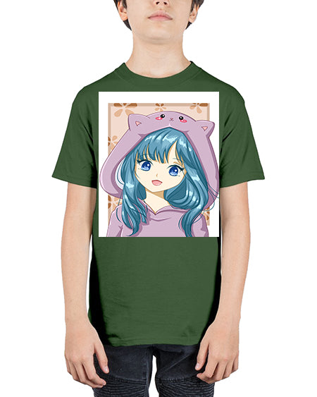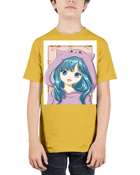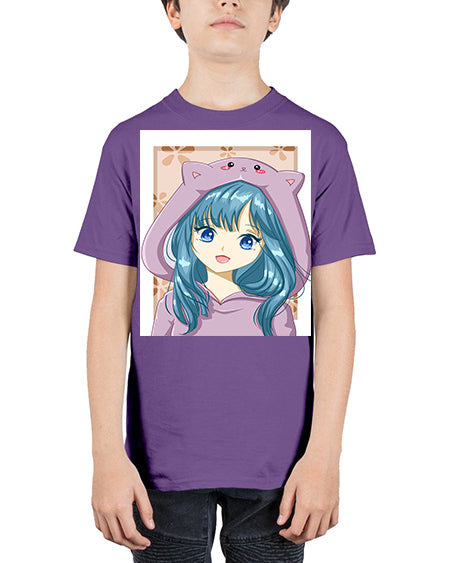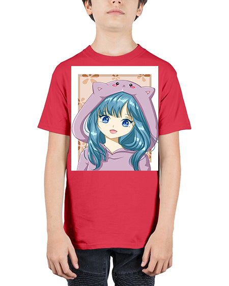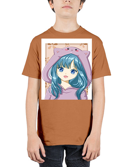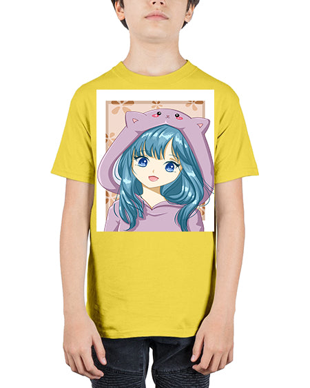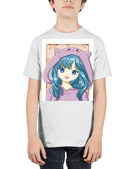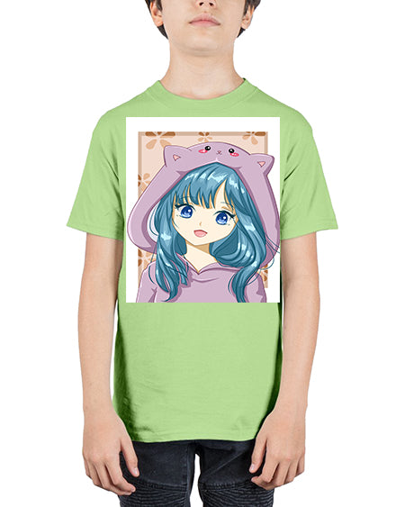 Cute and beautiful girl with cat jacket 107# - anime - Youth Tee Unisex