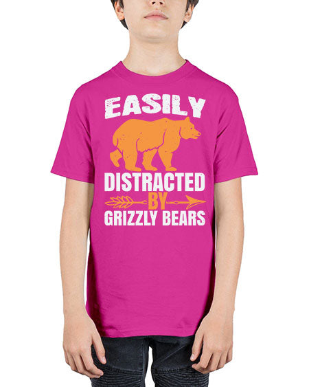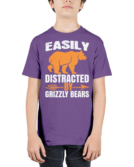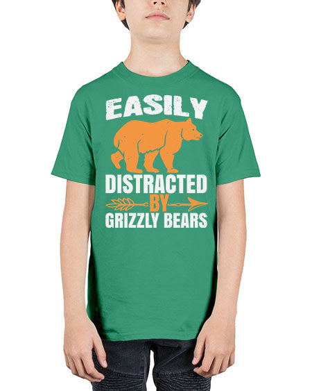 easily distracted by grizzly bears 107# - bears - animals - Youth Tee Unisex