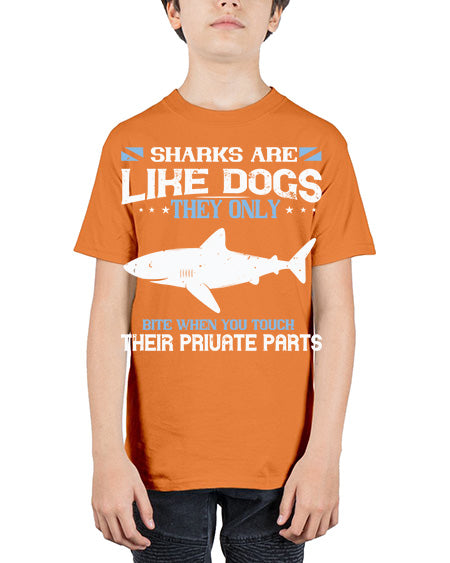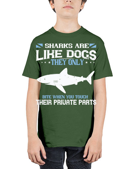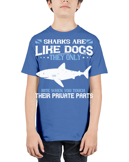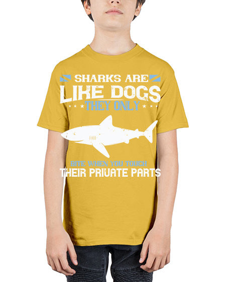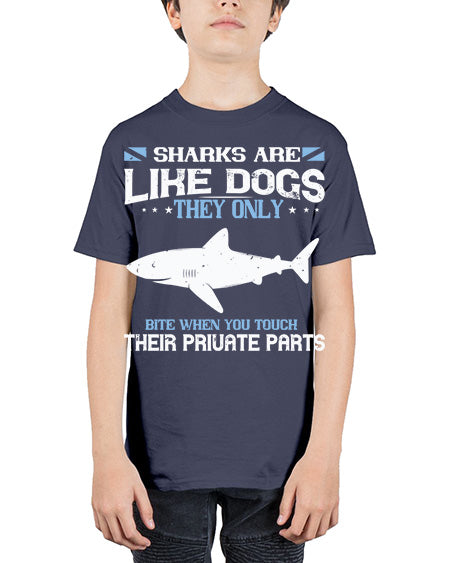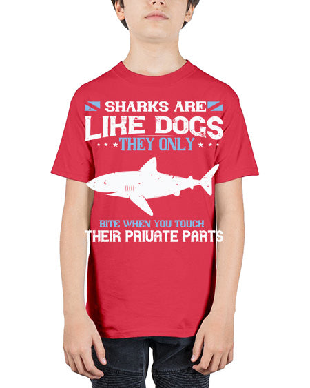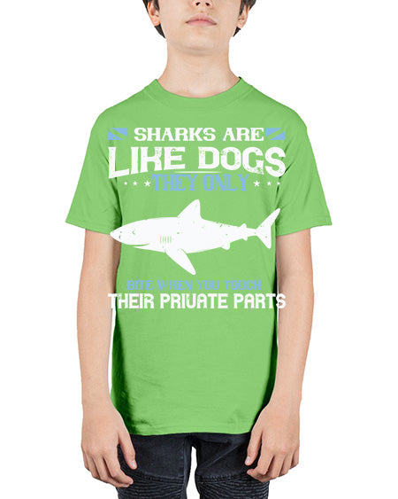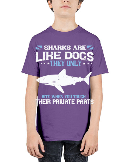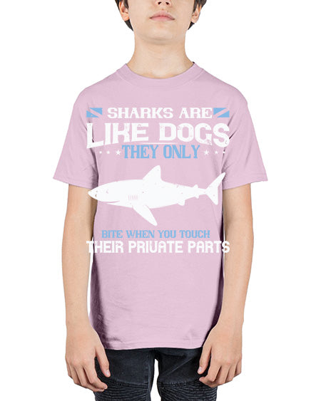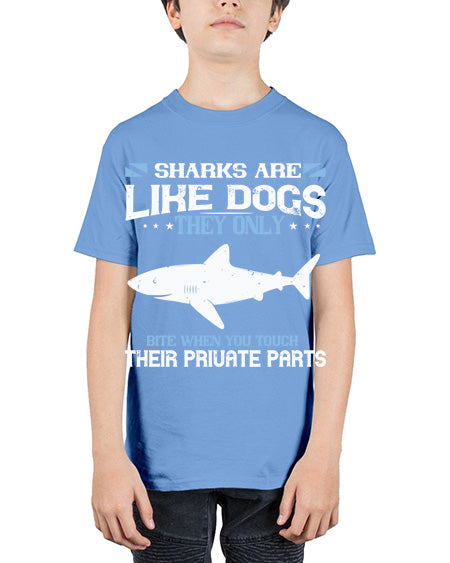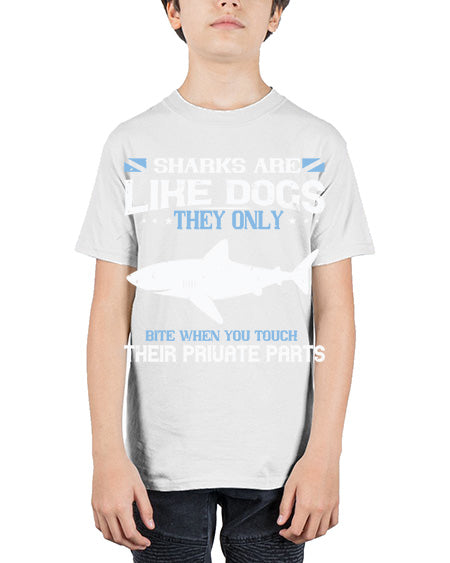 Sharks are like dogs They only bite when you touch their private parts Style 36# - shark-fish - Youth Tee Unisex