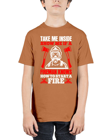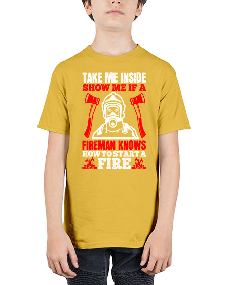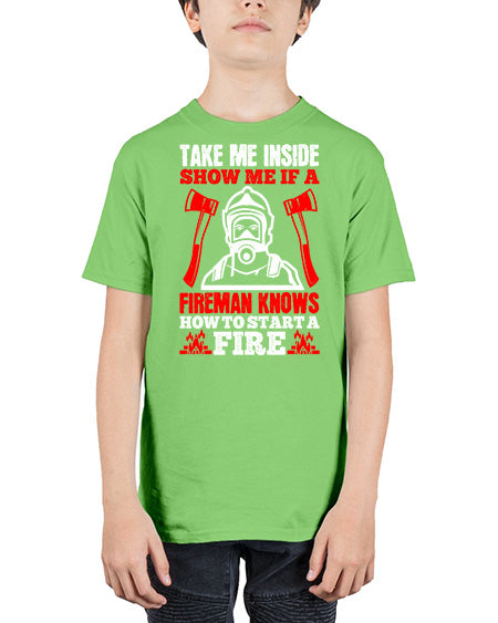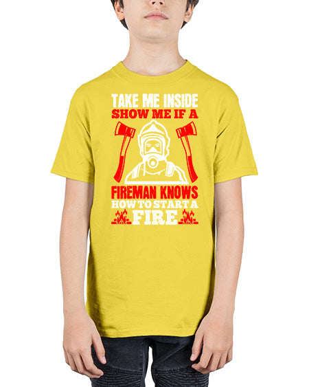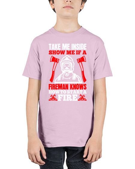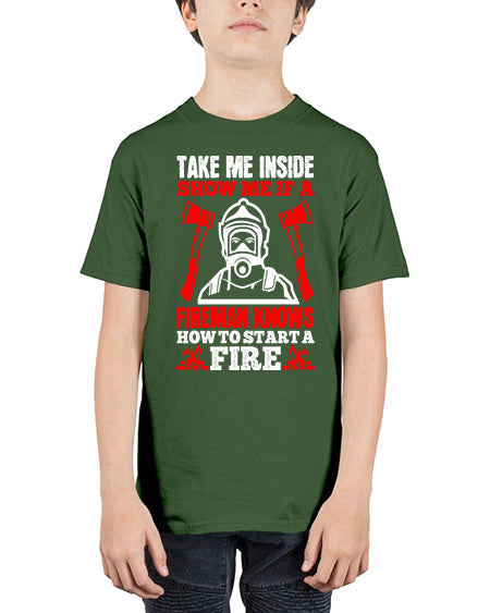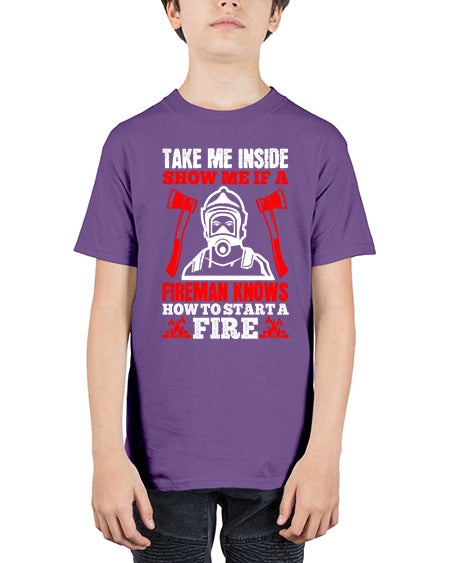take me inside show me if a fireman knows how to starta fire Style 1437# - fire fighter - Youth Tee Unisex