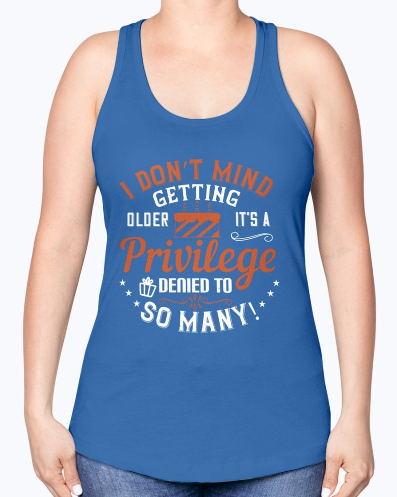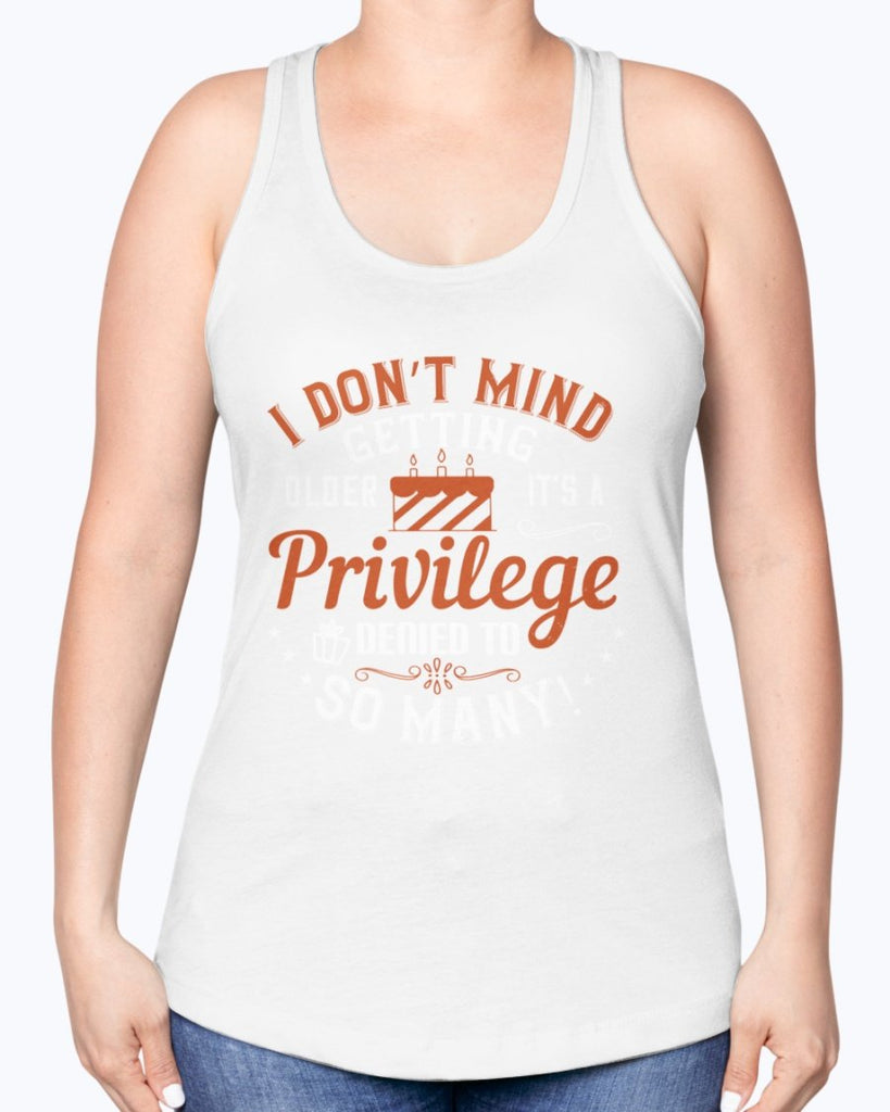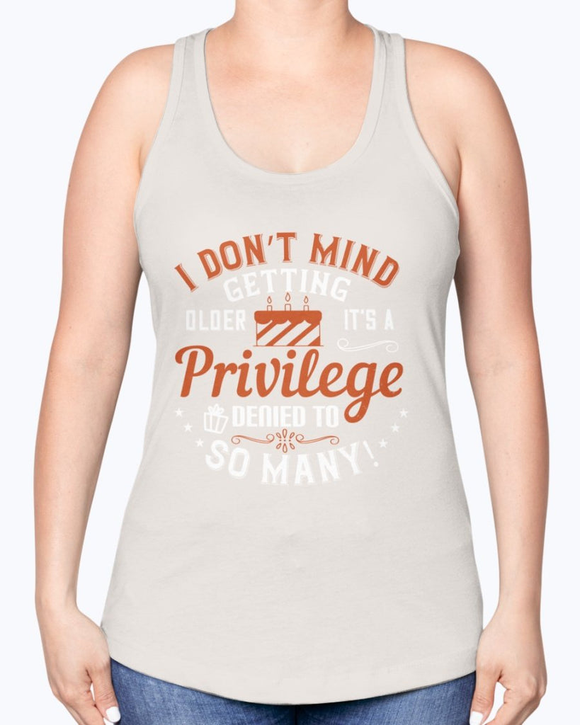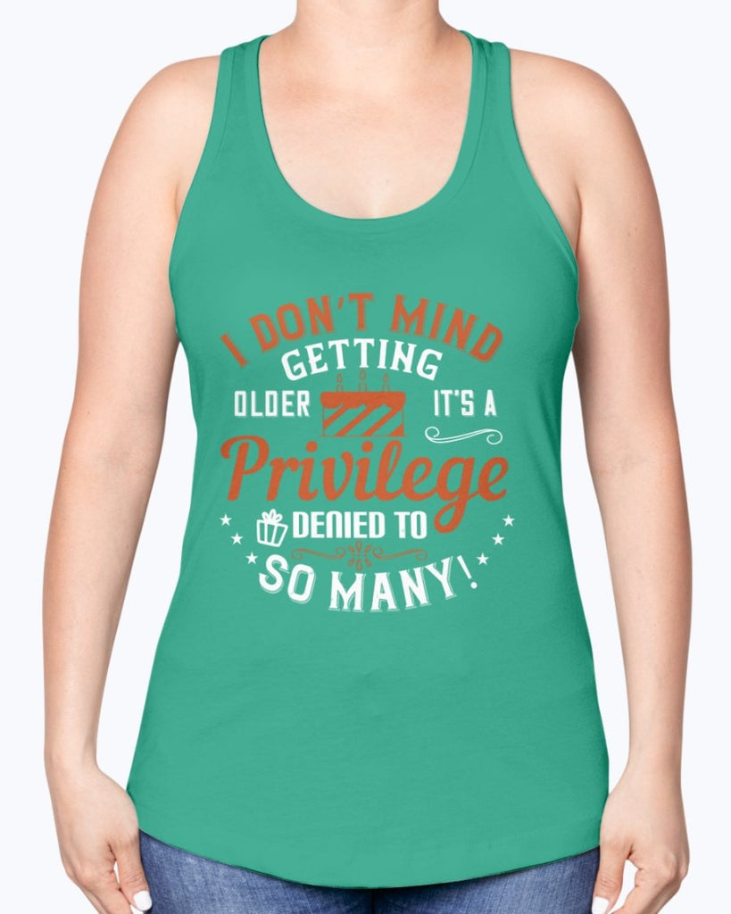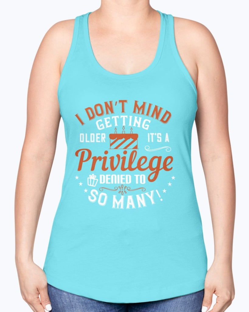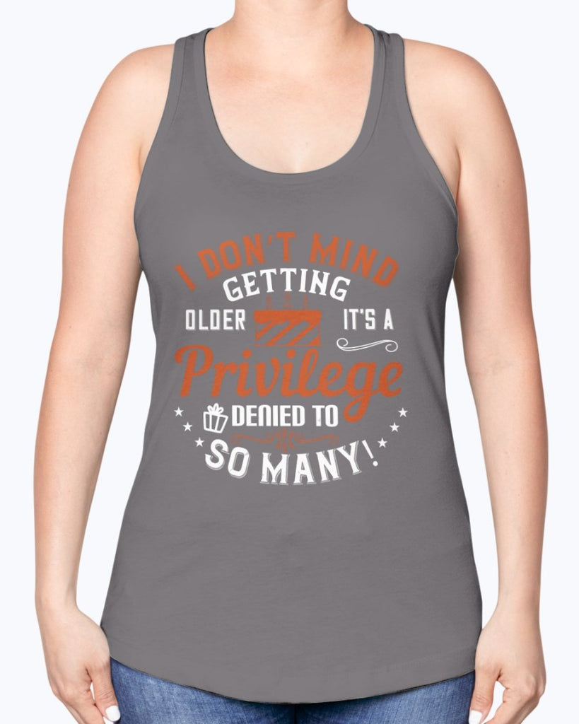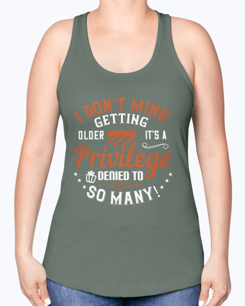 I don’t mind getting older; it’s a privilege denied to so many!- Birthday -Racerback Tank