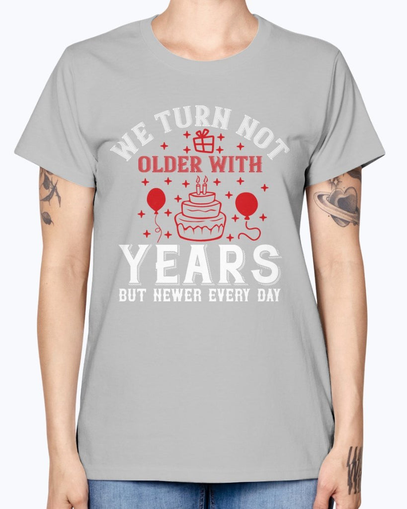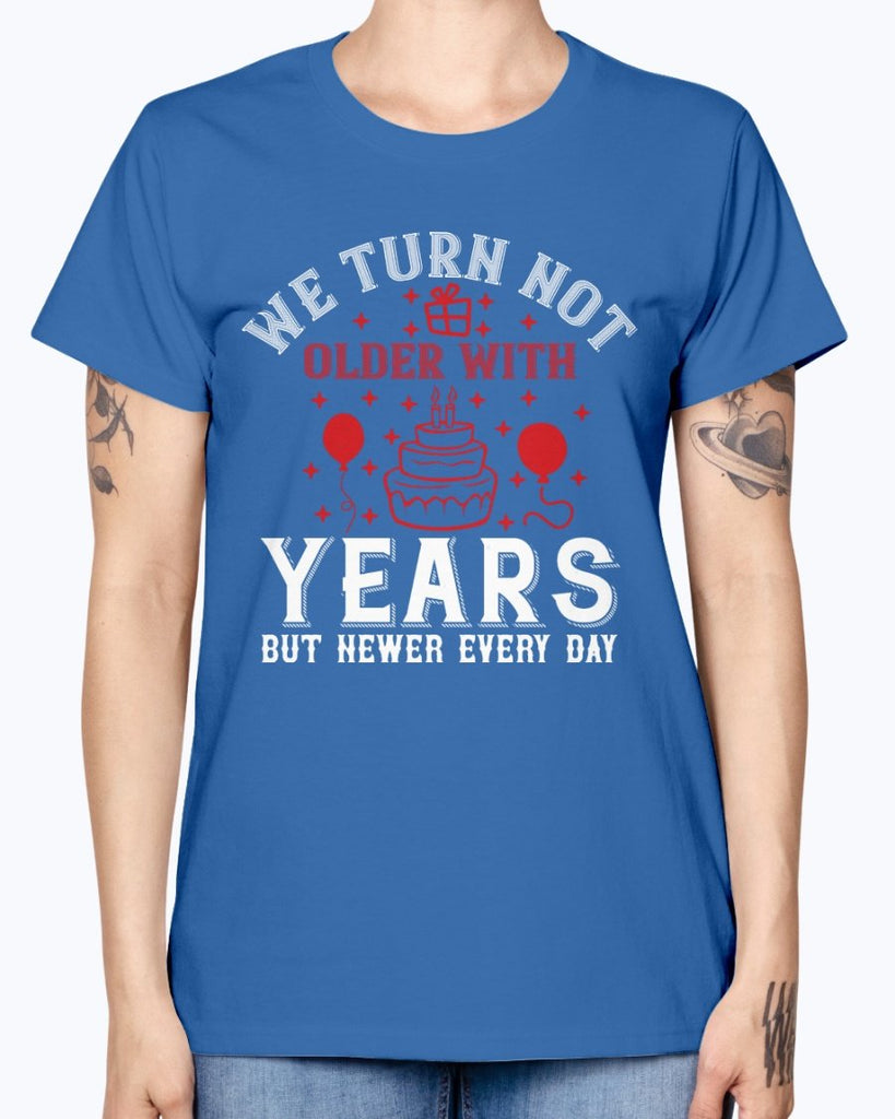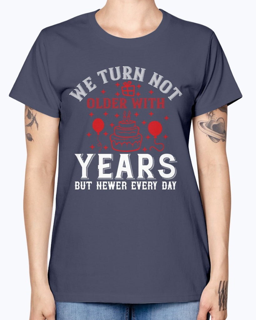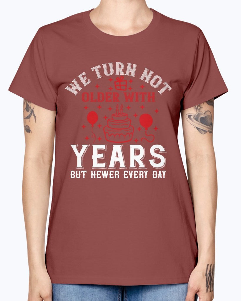 We turn not older with years, but newer every day- Birthday -Missy T-Shirt
