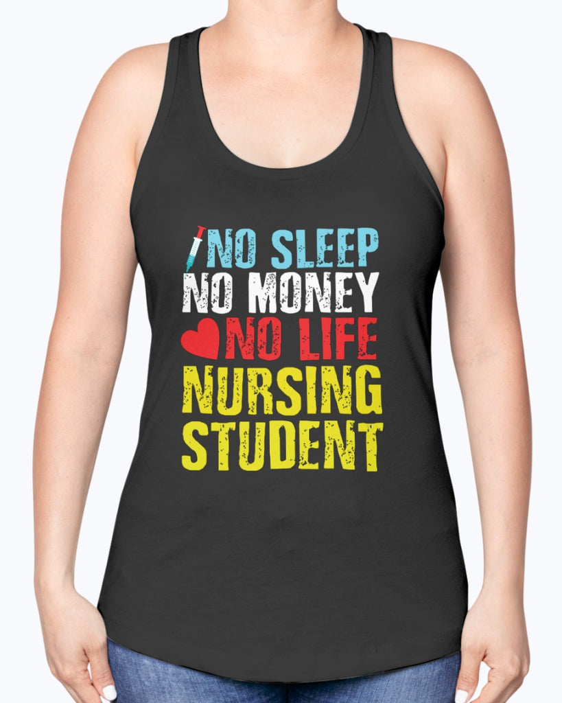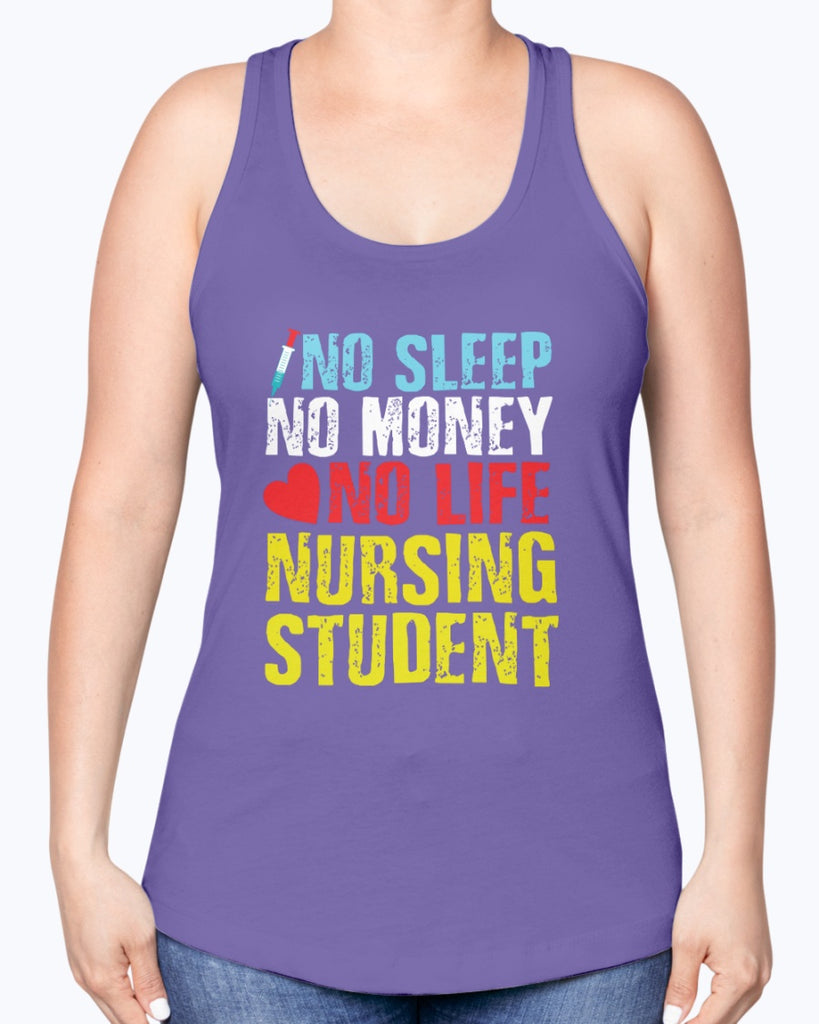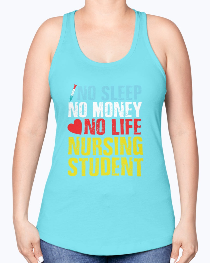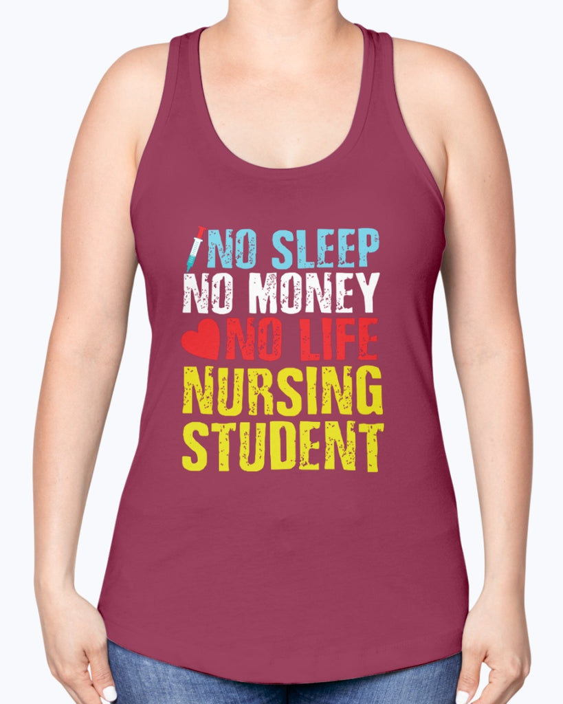 No Sleep No Money No Life Nursing Student - Nurse - Racerback Tank
