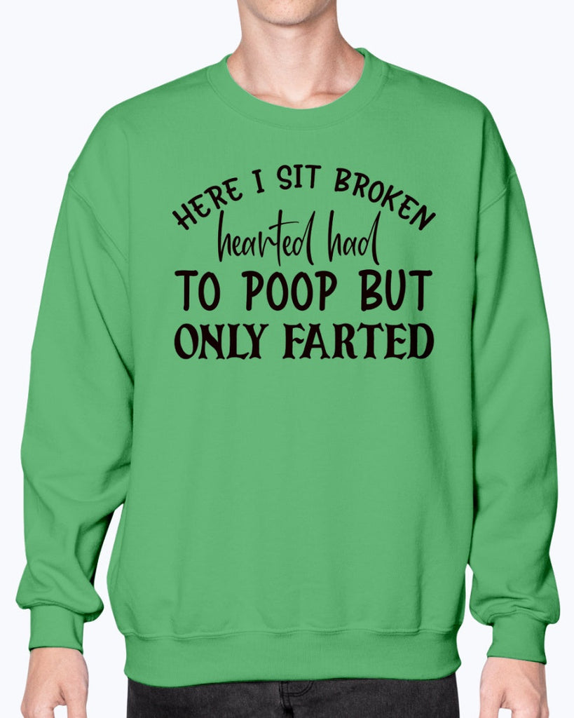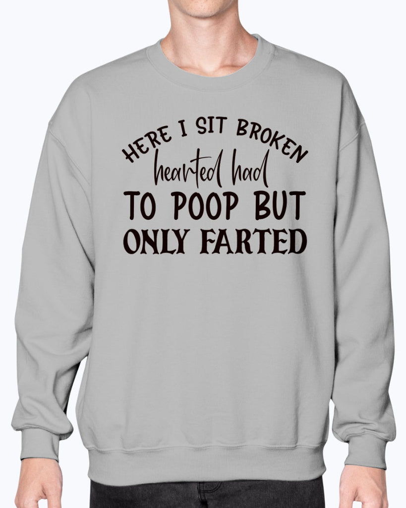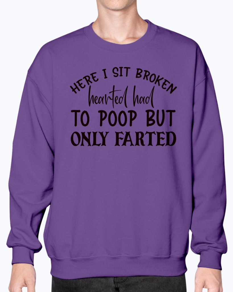 here i sit broken hearted had to poop but only farted-Bathroom Sweatshirt - Crew Details- Preshrunk fleece knit
