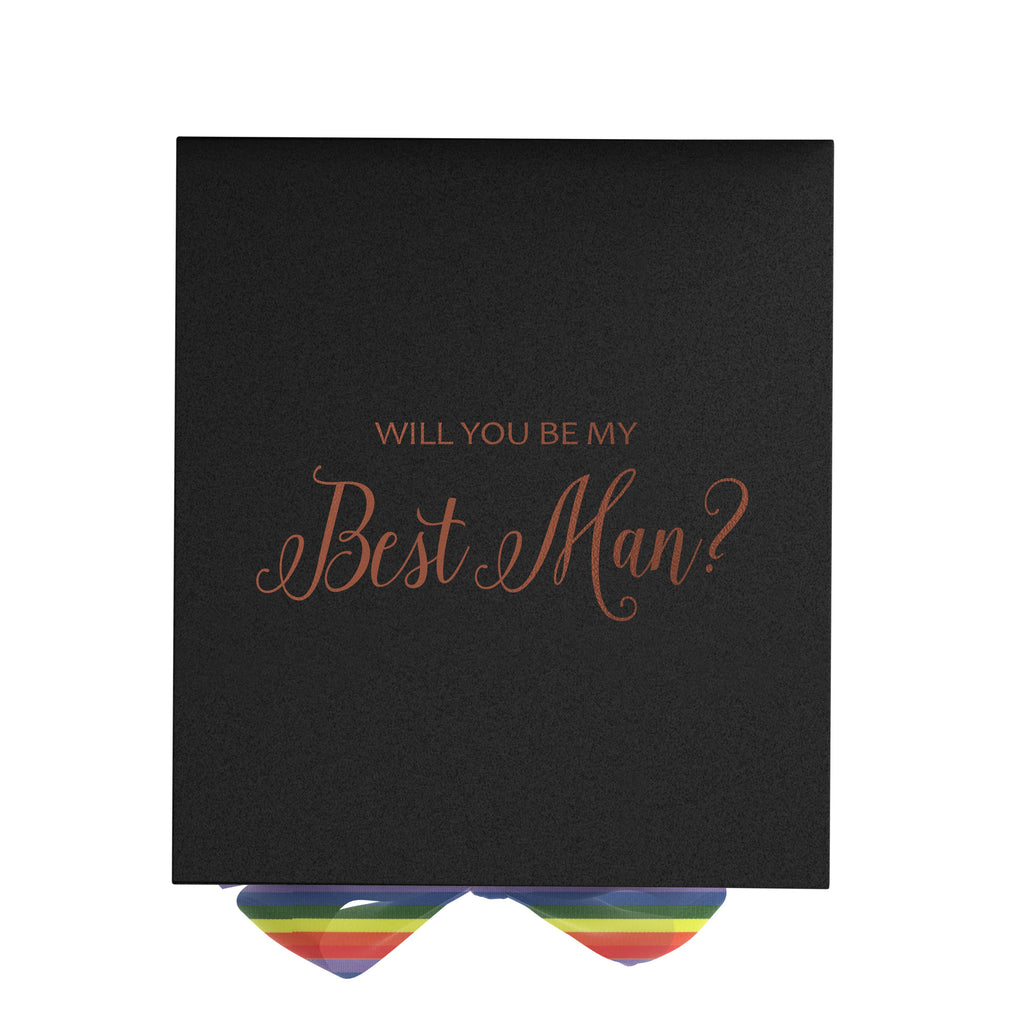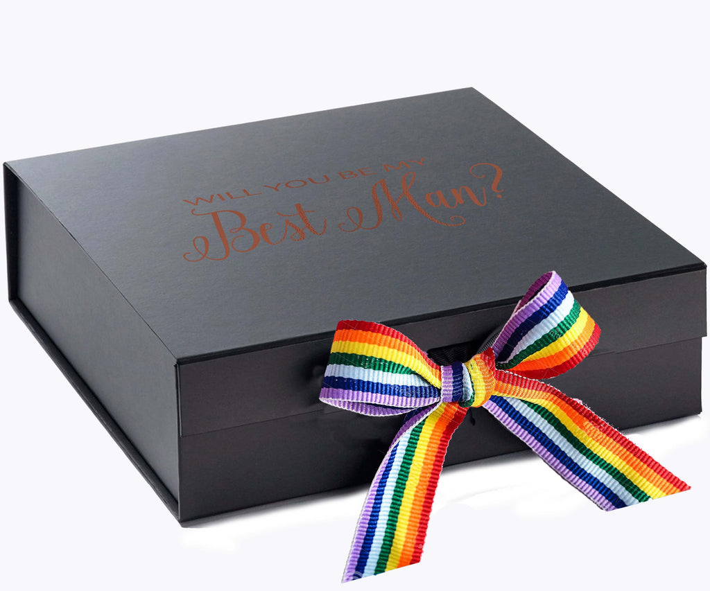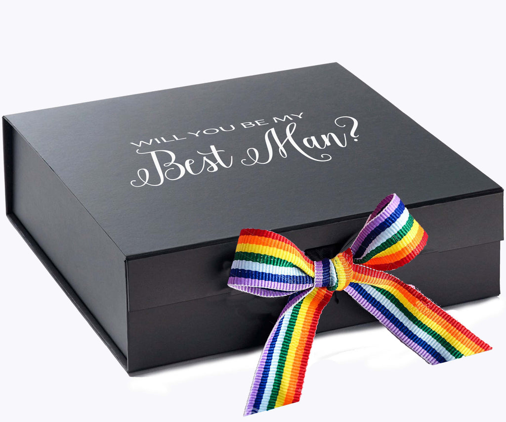 Will You Be My Best man? Proposal Box black - No Border - Rainbow Ribbon