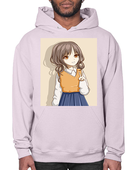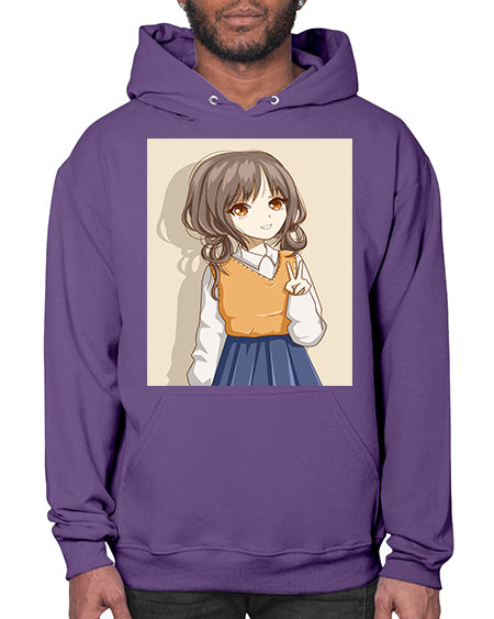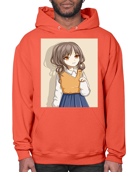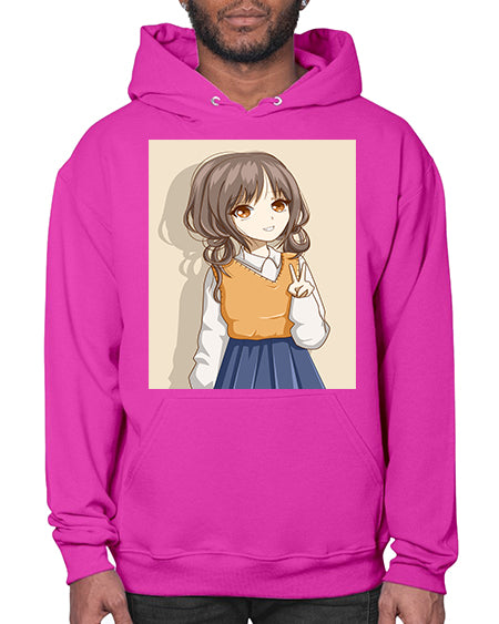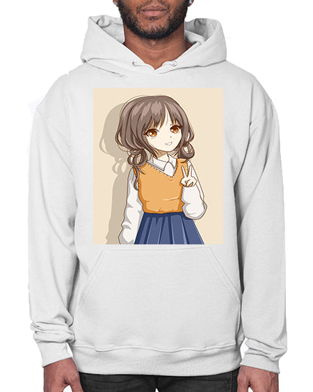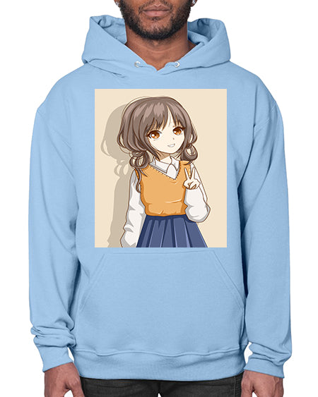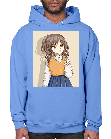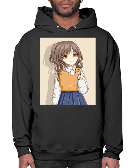 Cute and beautiful girl brown hair wearing uniform 71# - anime- Hoodie