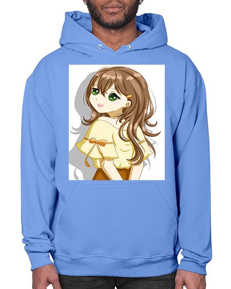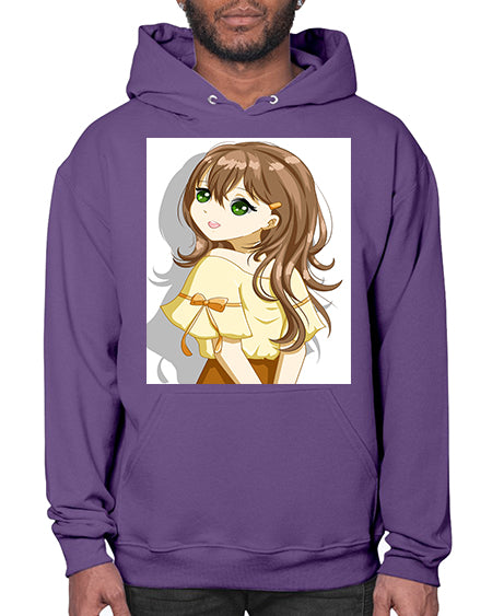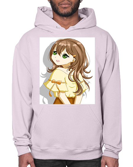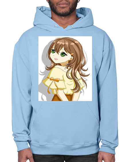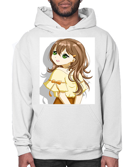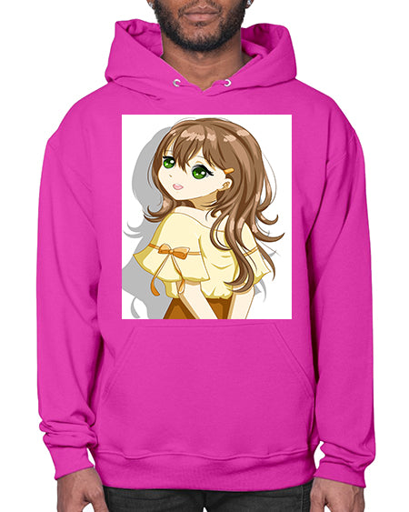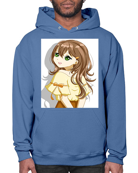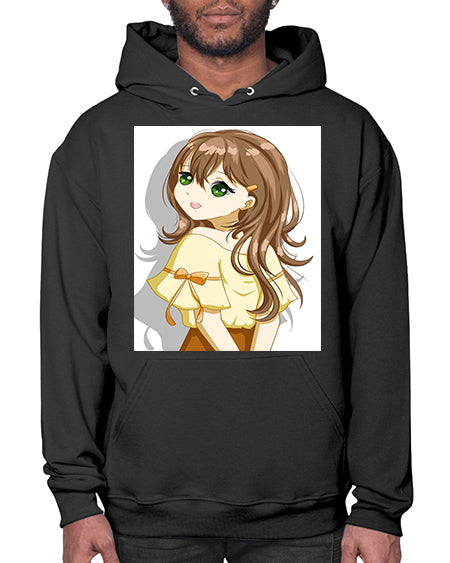 Cute and beautiful girl brown hair with yellow blouse 69# - anime- Hoodie