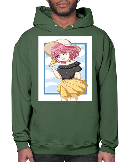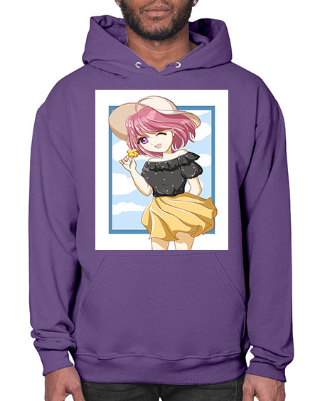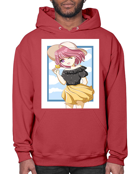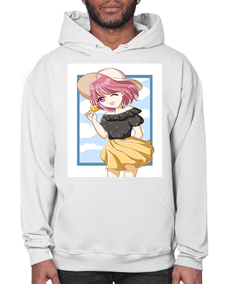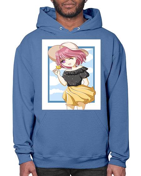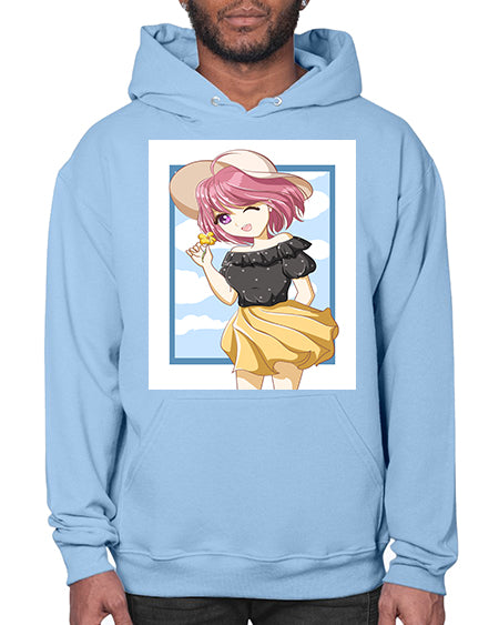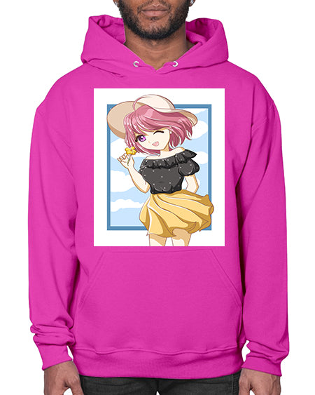Cute and beautiful girl pink hair with hat in the summer 146# - anime- Hoodie
