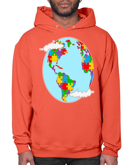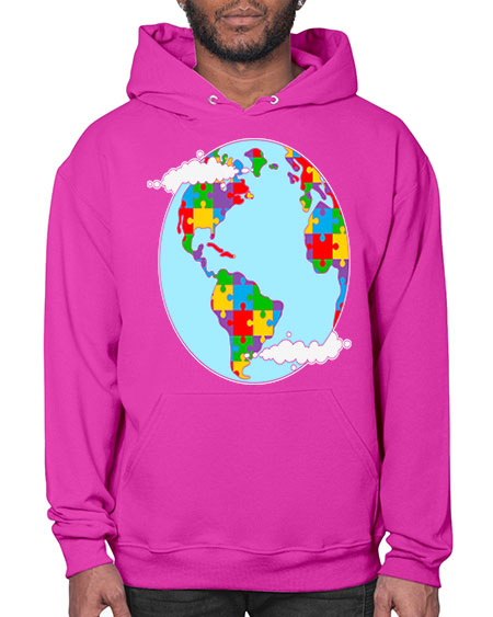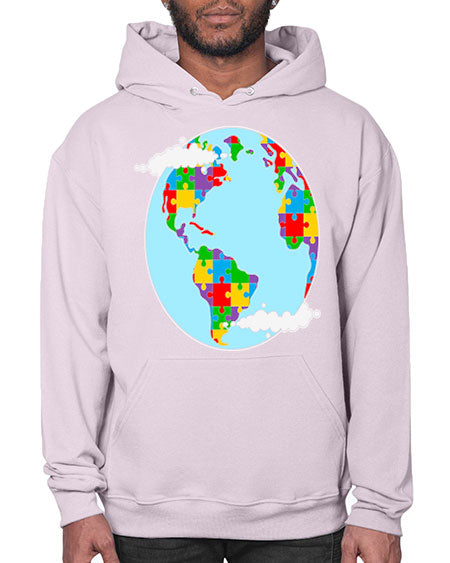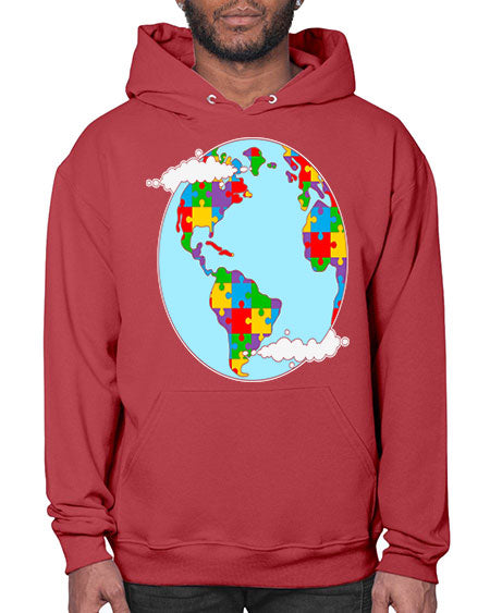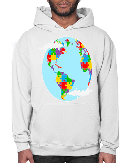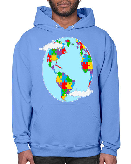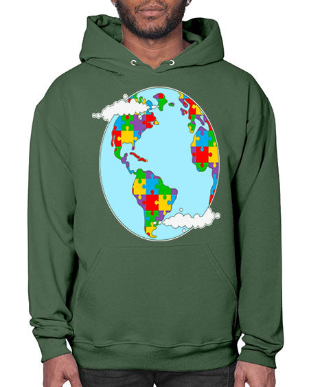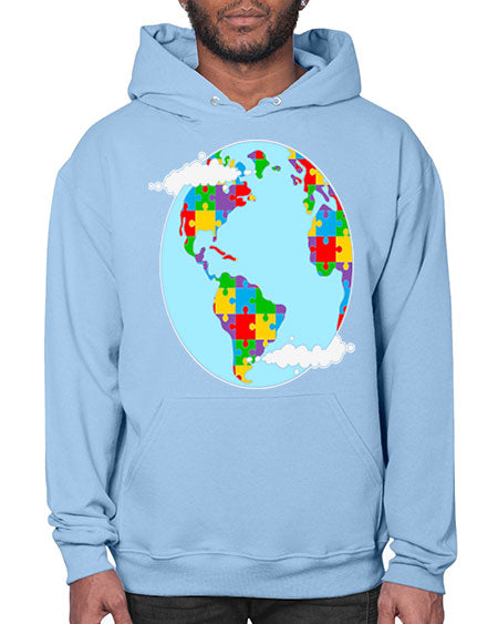 earth autism awareness heart puzzle 83# - autism- Hoodie