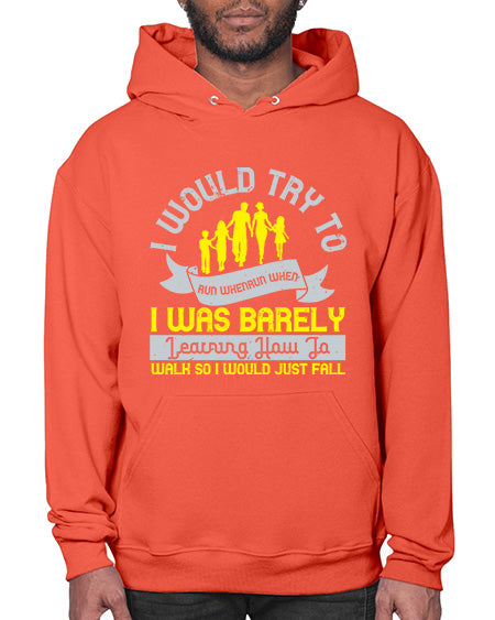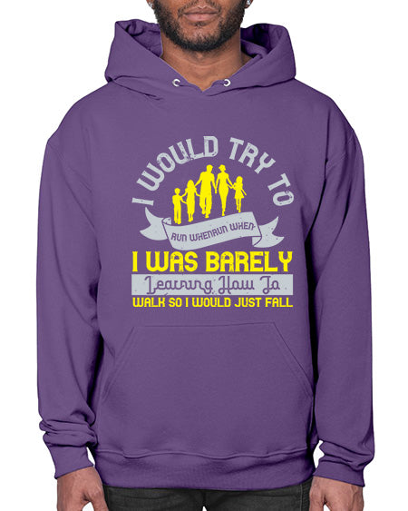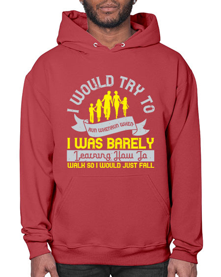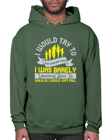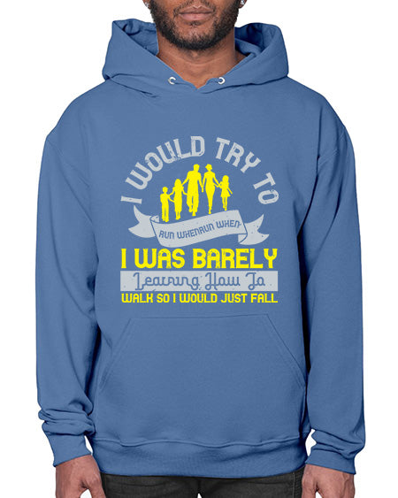 i would try to run whenrun when i was barely learing how to walk so i would just fall 310# - walking- Hoodie