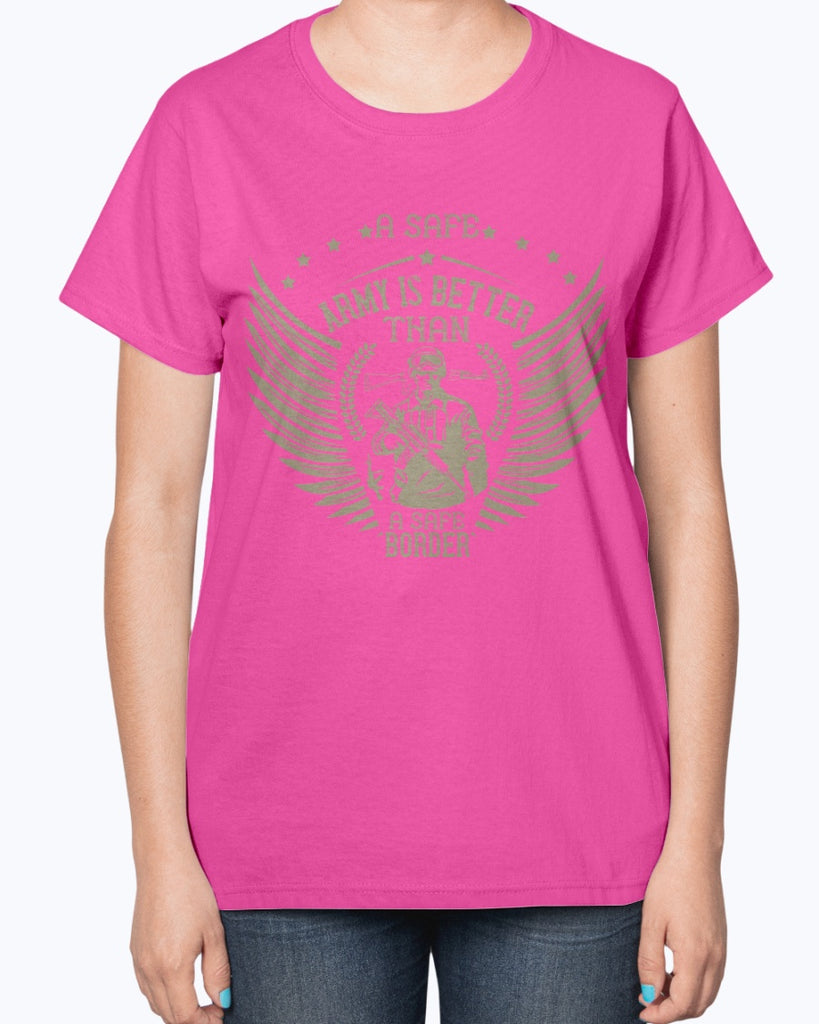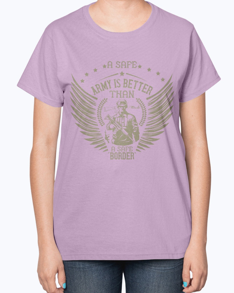 A safe army is better than a safe border- Military- Ladies T-Shirt Contoured fit, machine washable, cotton blend - Preshrunk jersey knit