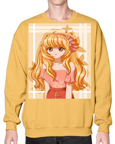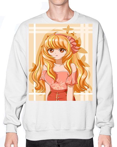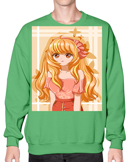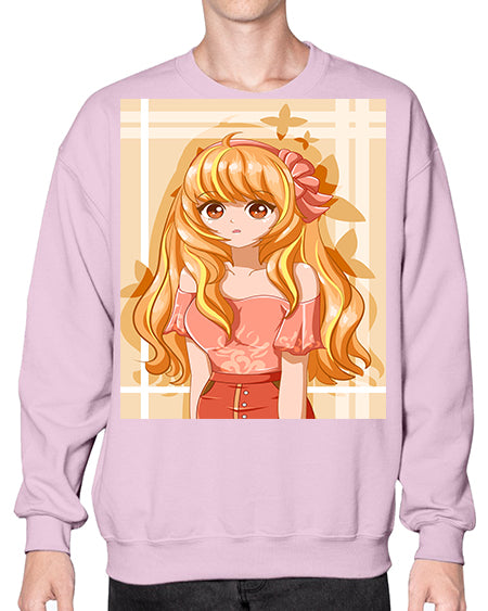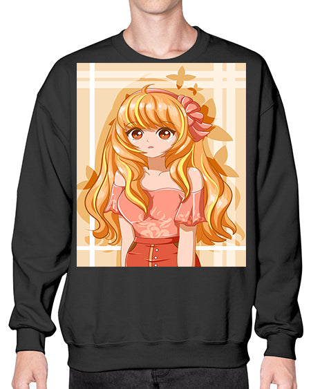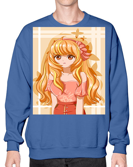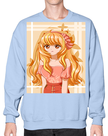 Cute and beautiful girl blonde hair with ribbon 110# - anime- Sweatshirt - Crew