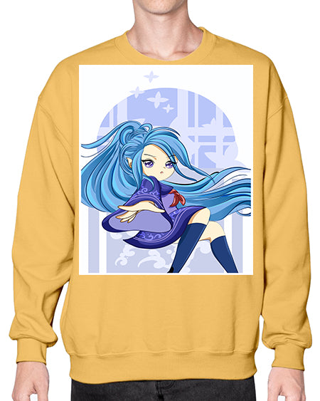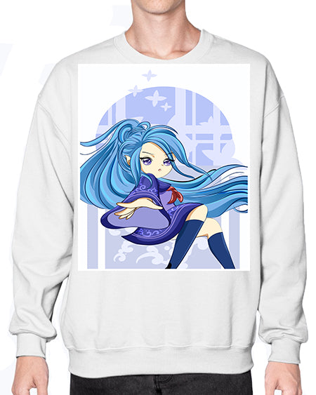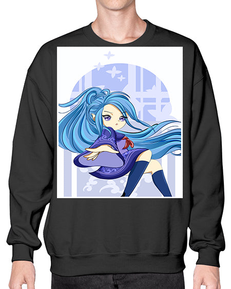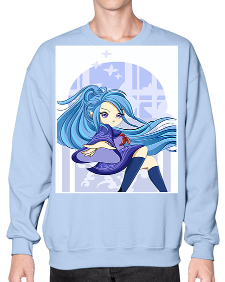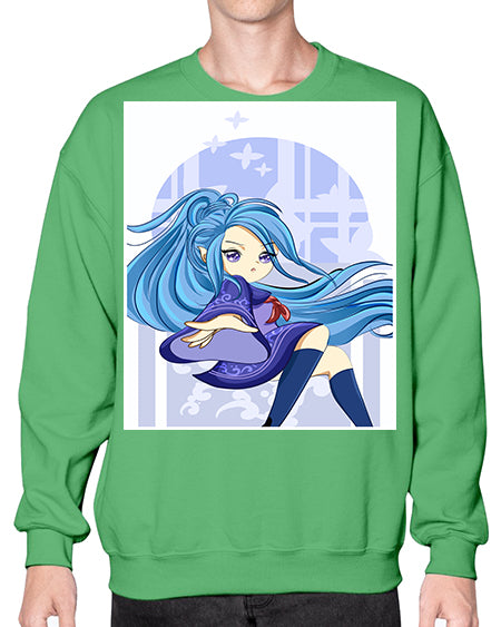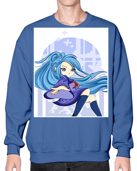 Cute and beautiful girl blue long hair cartoon 155# - anime- Sweatshirt - Crew