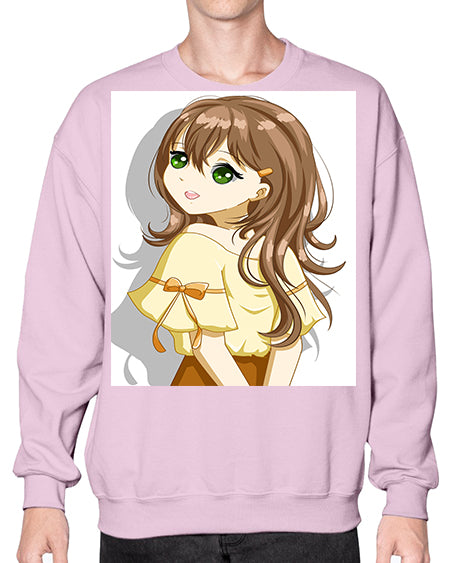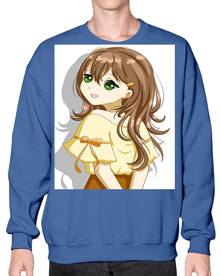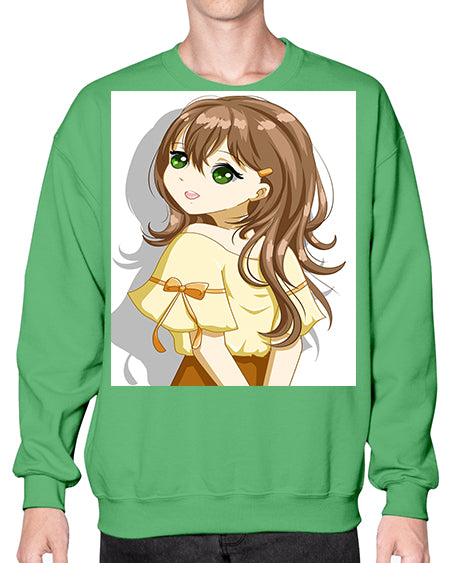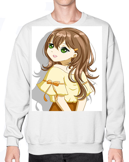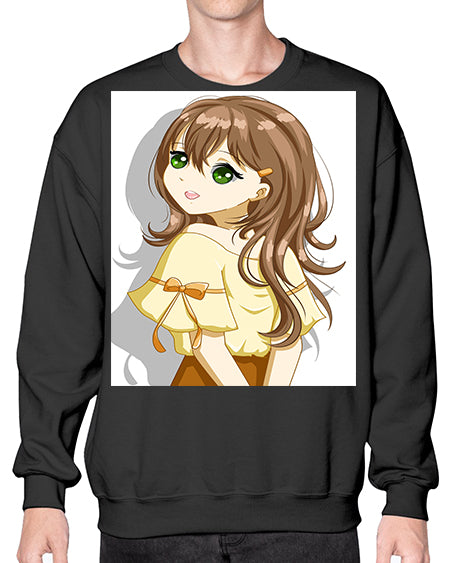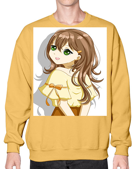 Cute and beautiful girl brown hair with yellow blouse 69# - anime- Sweatshirt - Crew