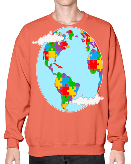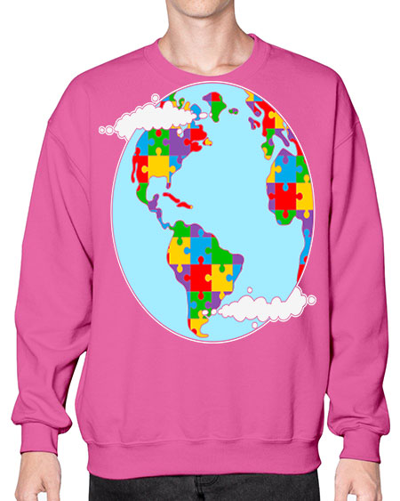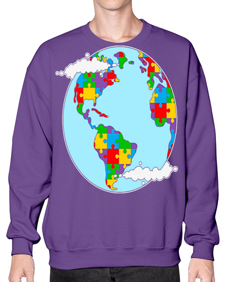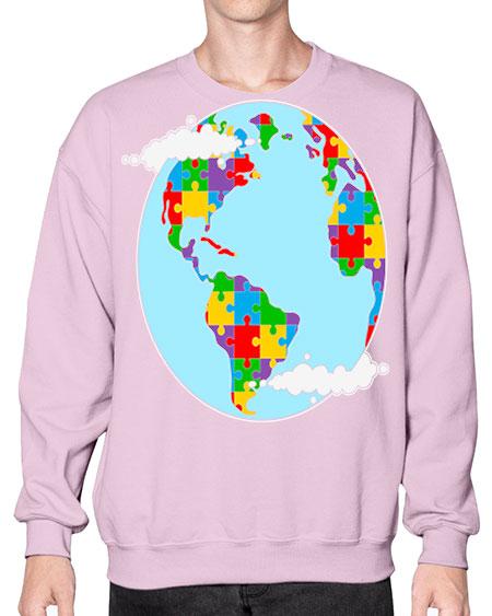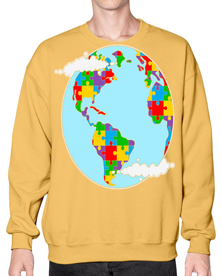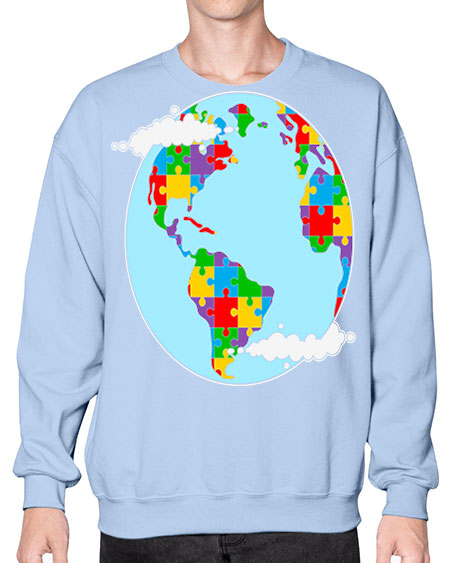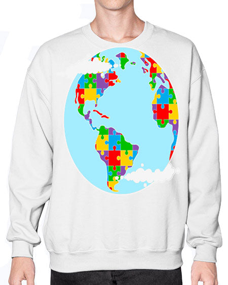 earth autism awareness heart puzzle 83# - autism- Sweatshirt - Crew