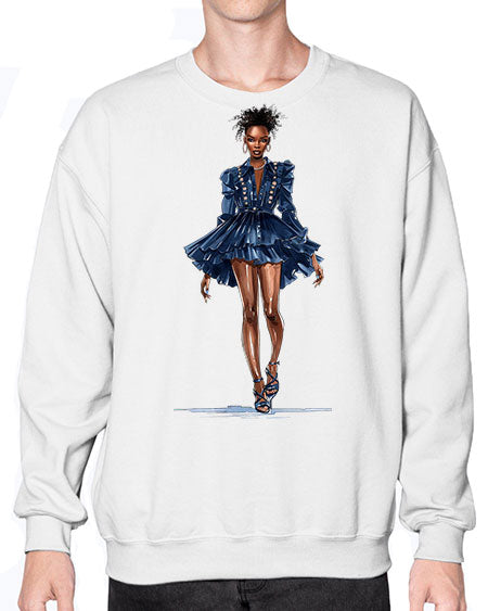 fashion girl in indigo 32# - fashion- Sweatshirt - Crew