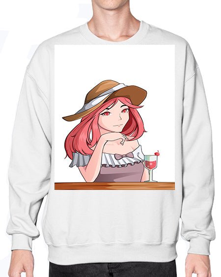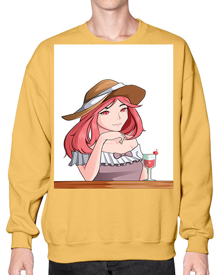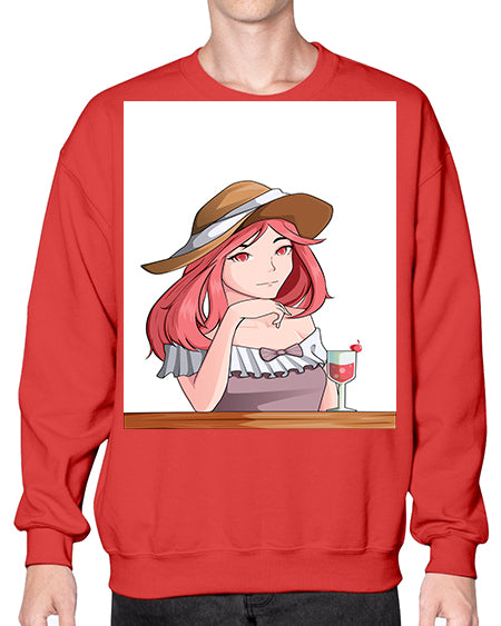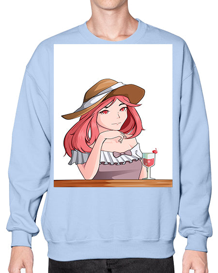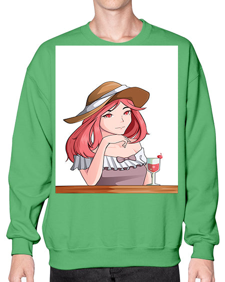 pretty woman with fresh juice in summer 37# - anime- Sweatshirt - Crew