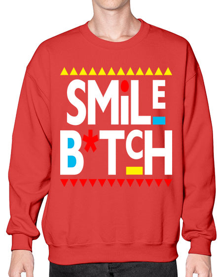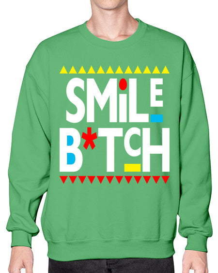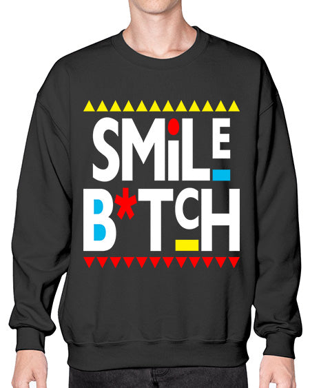 smile bitch 30# - black words and phrases- Sweatshirt - Crew